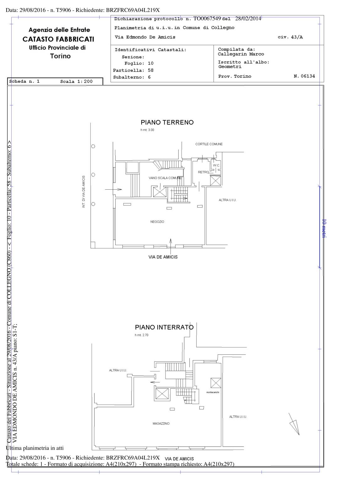 | Magazzino - piano interrato | 180 Mq | 54 Mqc |